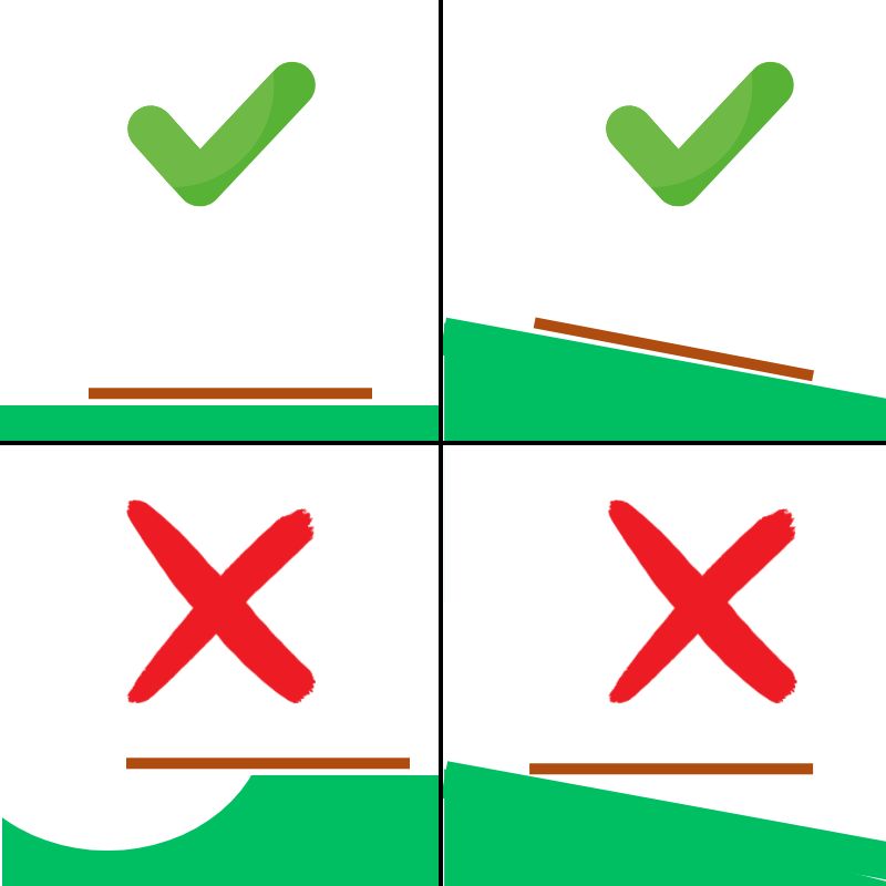 Hat der Untergrund im ganzen ein glattes Gefälle, ist dies in der Regel kein Problem. Man muss sich im Klaren sein, dass der Boden dann eben auch im Gefälle liegt und man im Ergebnis keine horizontale Fläche erreicht.