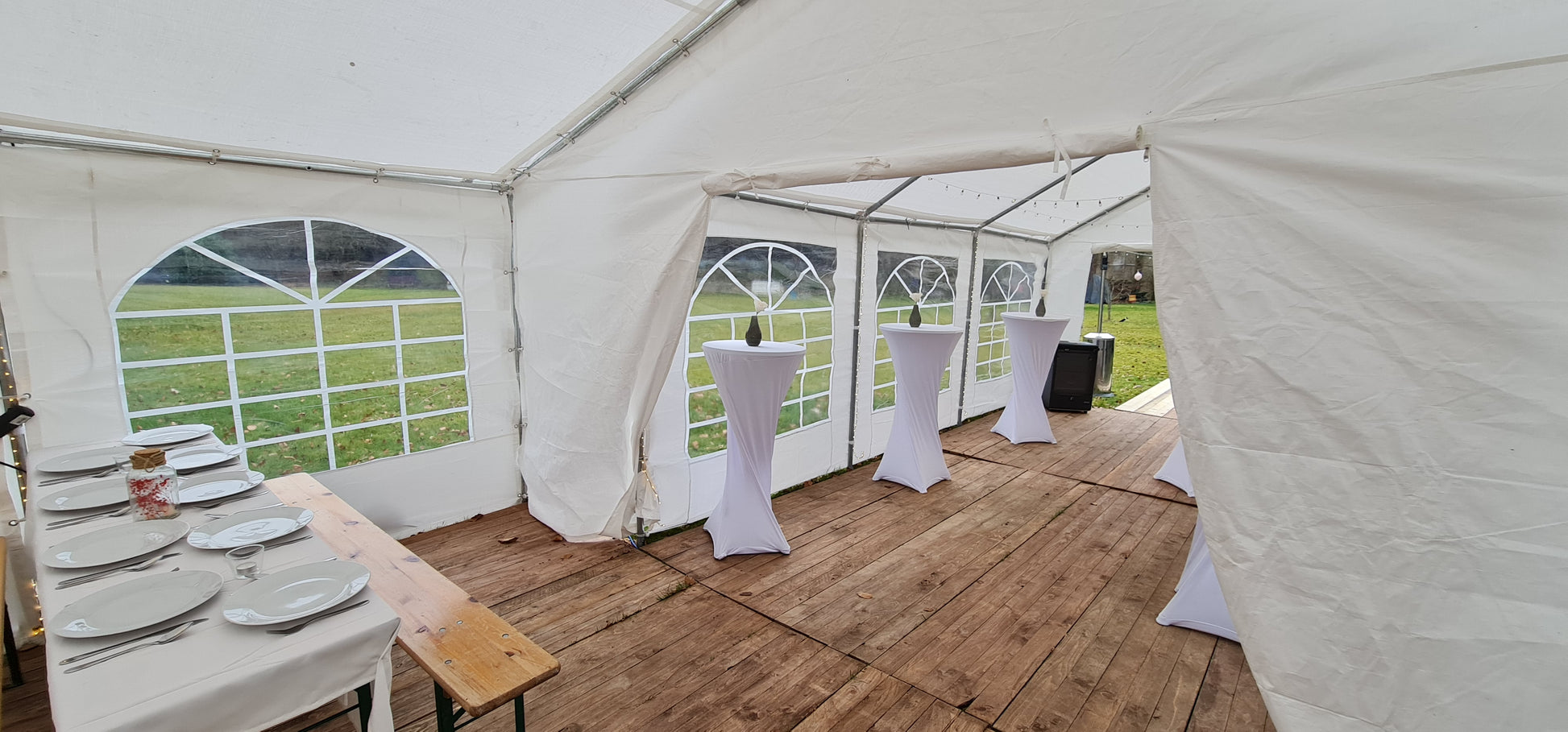 Miete bei uns partyerprobten Holz Zeltboden. Du schützt damit nicht nur einen Rasen, sondern auch die Schuhe und Hosen Deiner Gäste.